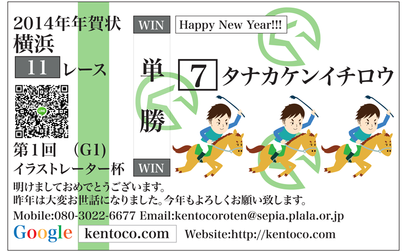 来年は馬年ですね。オリジナル年賀状を作りました。