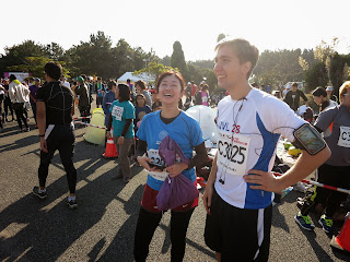 さて僕たちは4人チームで、42.195kmを駅伝のようにタスキをつないで走りました。一人だいたい10km走ります。僕はこの一ヶ月間うちの周りで地獄の特訓をしてきました。絶対完走したいです!